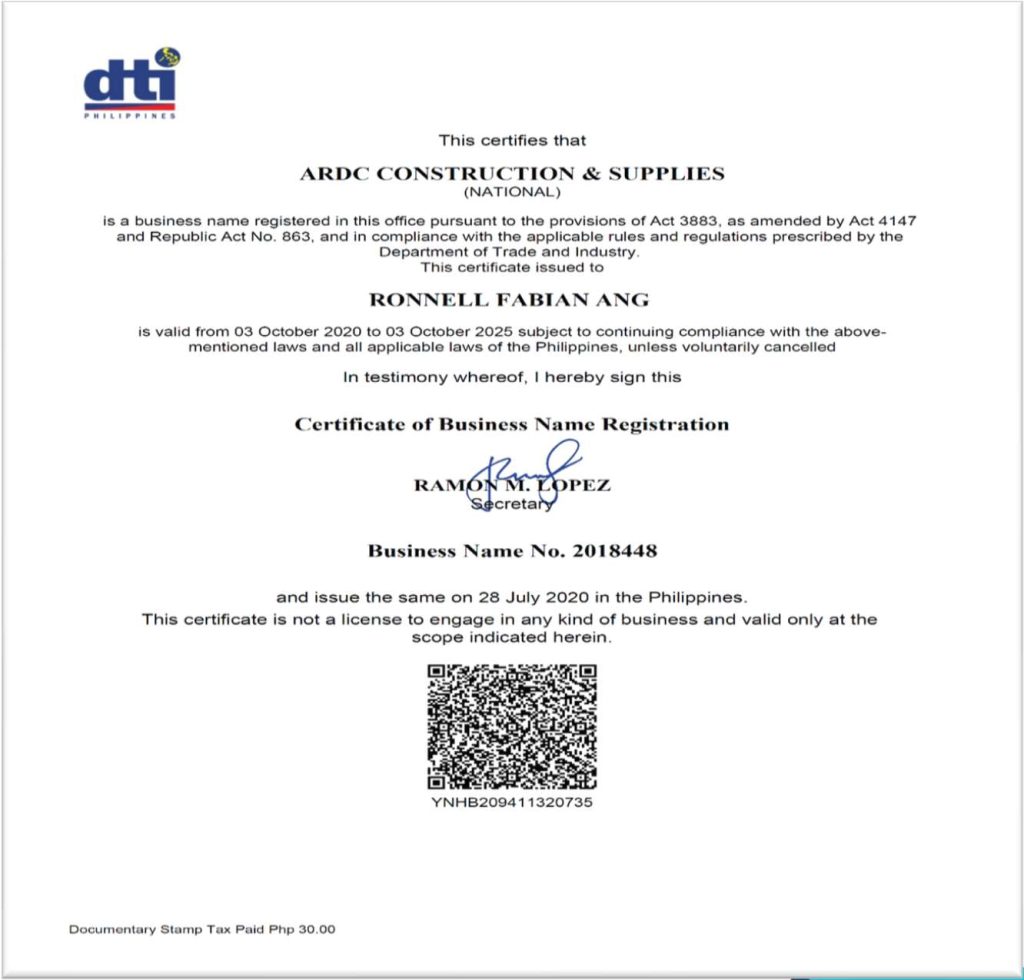 DTI BUSINESS NAME REGISTRATION