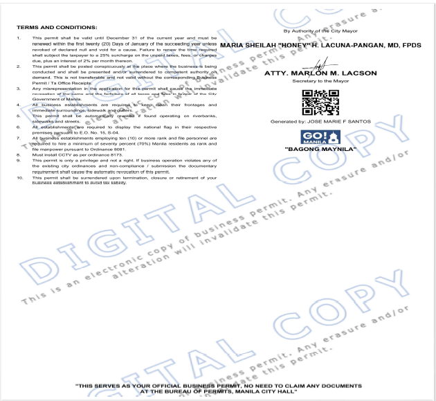 MAYOR’S BUSINESS PERMIT
